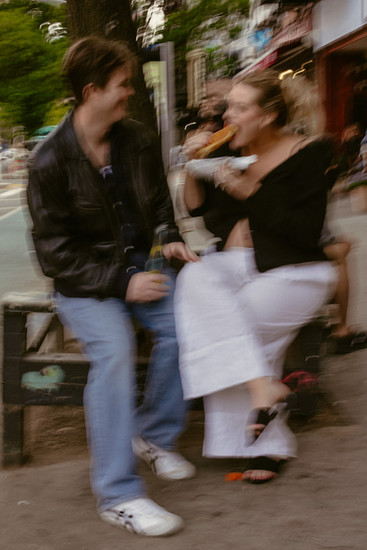 As a Cinematic maternity photographer in New York City, I'm always a fan of my subjects intentionally doing things they actually love doing during their photo sessions. Real joy yields real photo joy. Whether we're shooting super posed or candid (this session was super candid), doing an activity that brings joy translates so well in the final product. For Caroline and Ross, their joy came from walking their favorite date night neighborhood, the East Village and Tompkins Square Park. One of their last strolls before they became three.